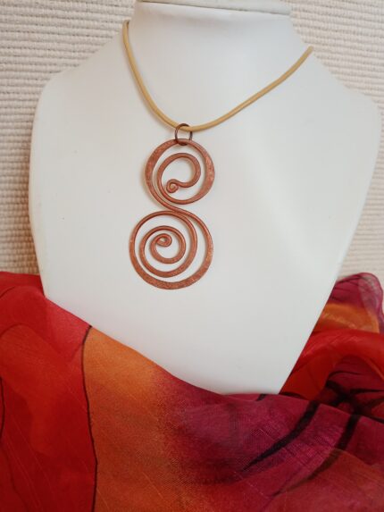 KÖZEPES Réz ÁLLÓ 808nő ékszer vajszínű bőrzsinóron 6 cm medállal