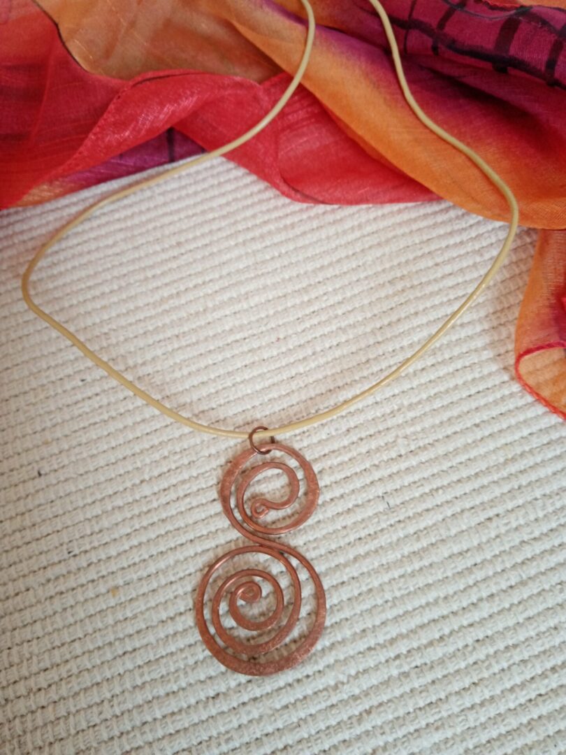 Ezek az ékszerek vörösréz huzalból készültek. Mindet egyenként, kézzel hajtogatta és kalapálta az ékszer készítője.